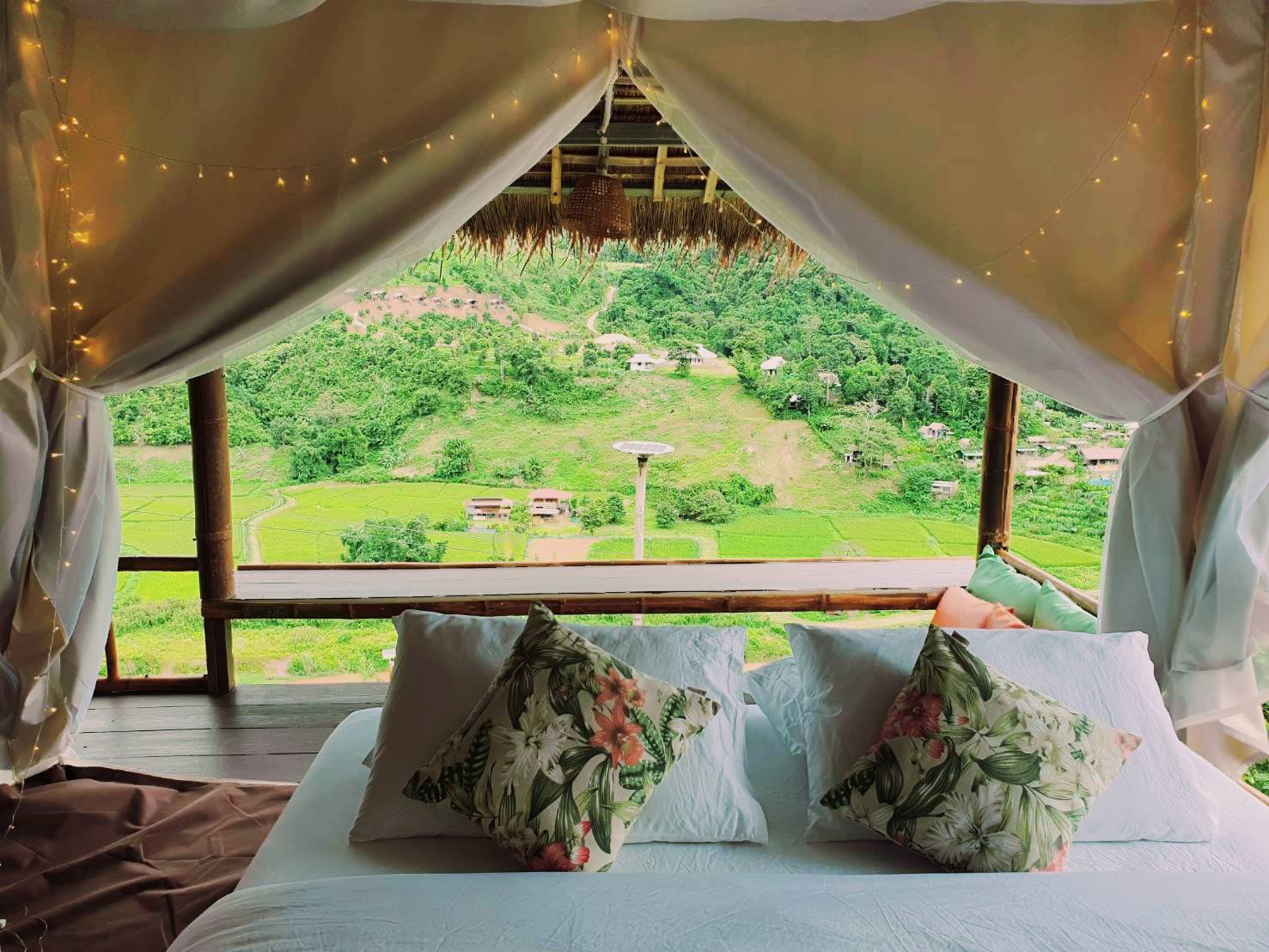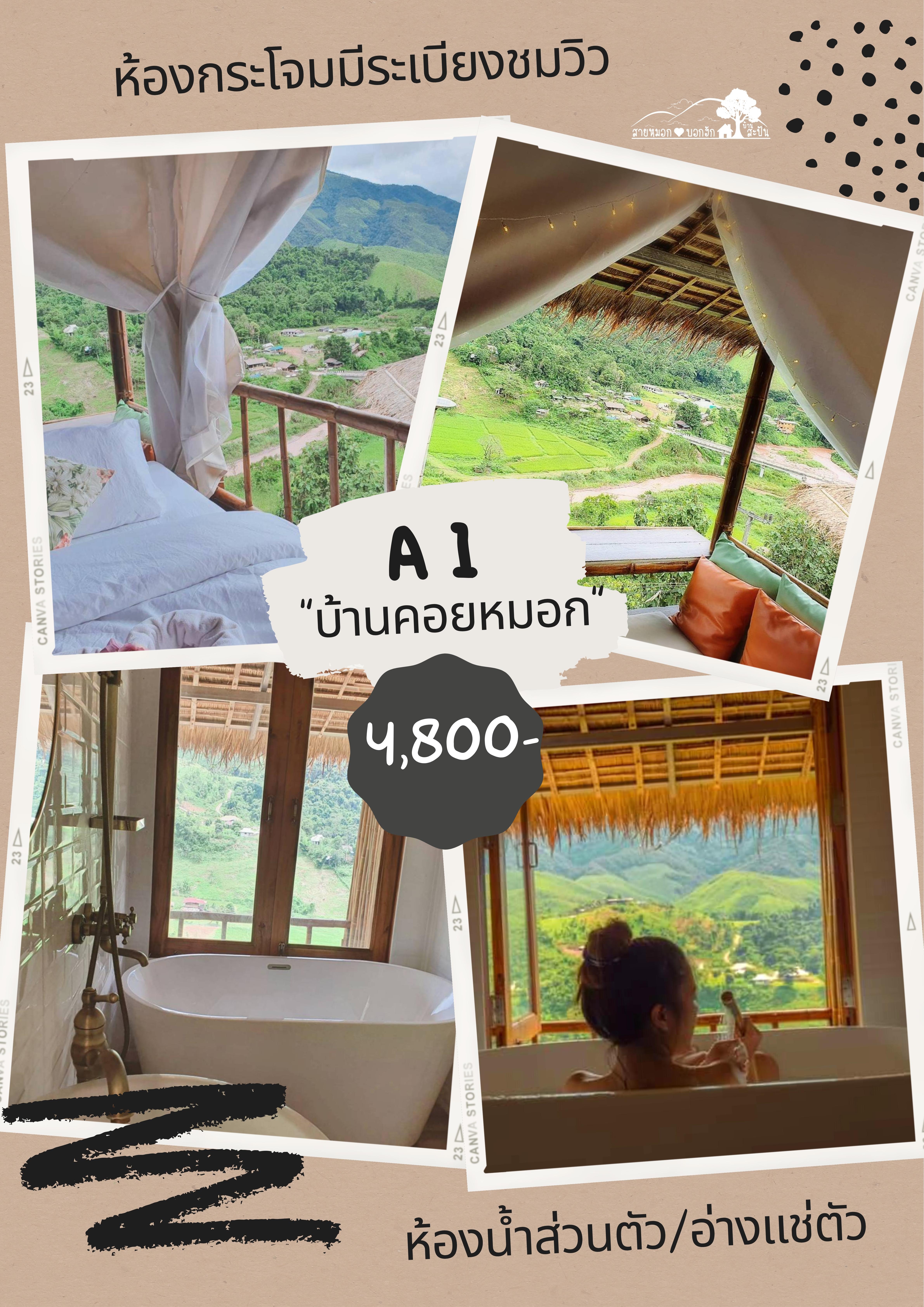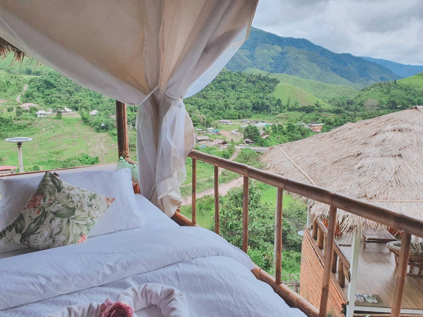 สำหรับห้องพักแค่เปิดประตูมาก็เห็นวิวจากห้องพักได้เลย วิวที่คุณลูกค้าจะเห็นจากห้องนี้จะมี นาขั้นบันได หมู่บ้านสะปัน วิวเขาที่ทอดยาวกั้นเขตแดนระหว่างประเทศไทย ลาว (เทือกเขาหลวงพระบาง) และวิวสายน้ำที่ถือว่าเป็นต้นกำเนิดของแม่น้ำน่านอีกด้วย