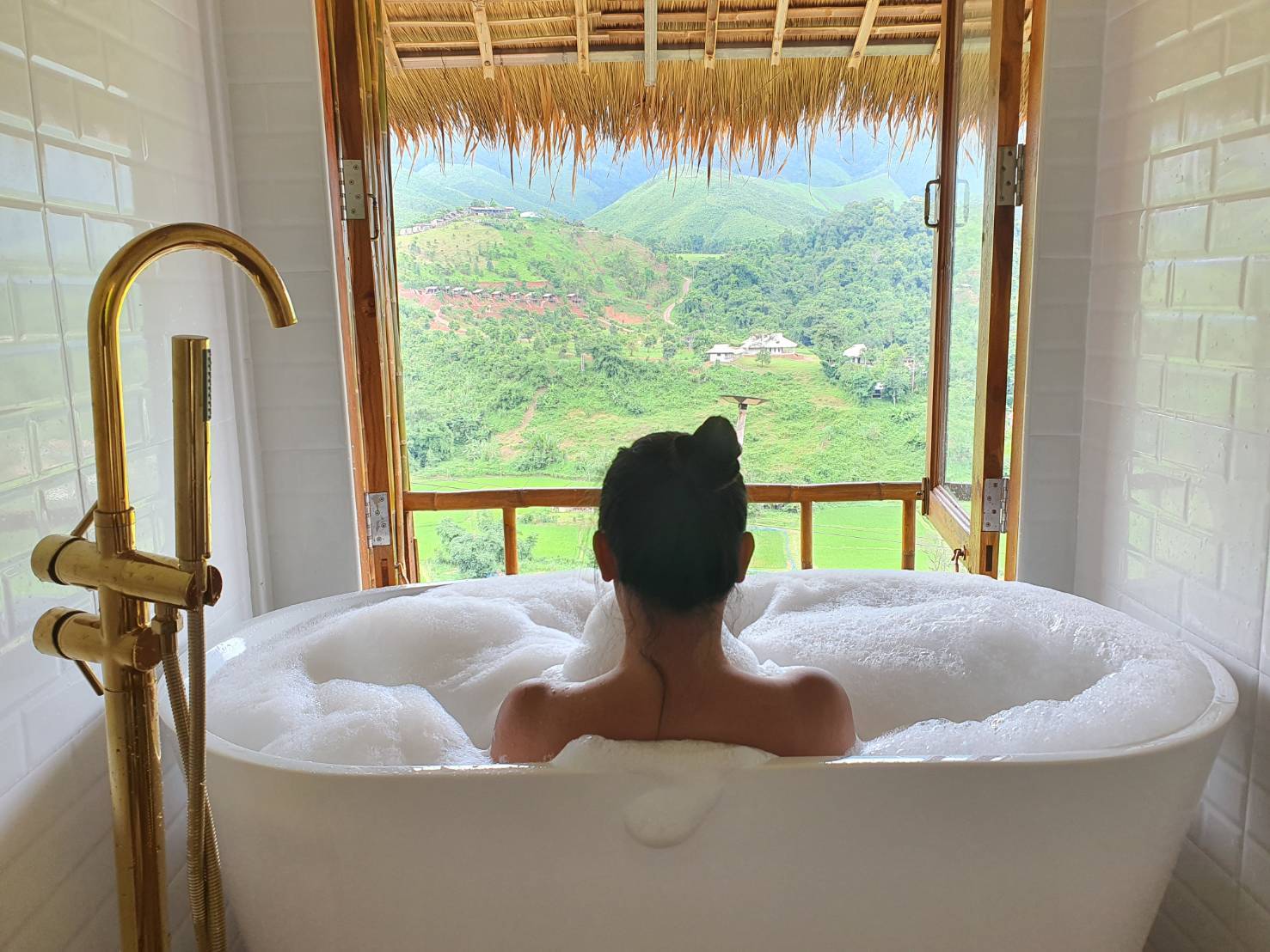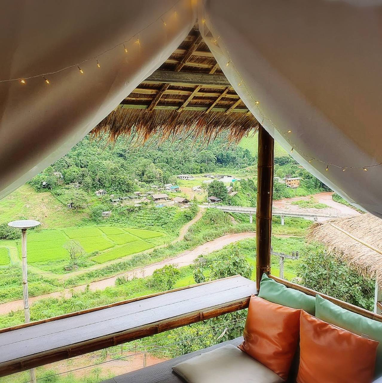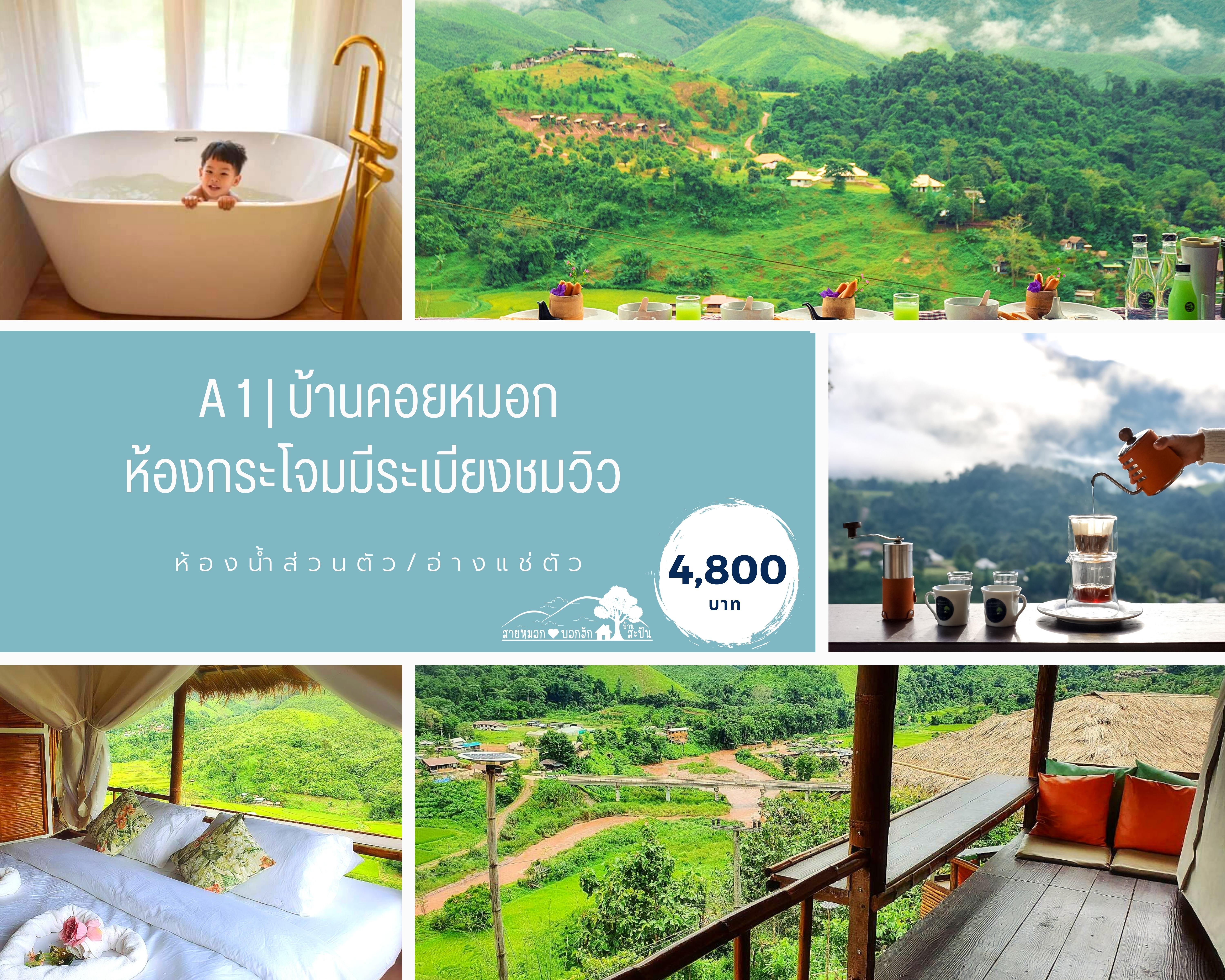 สำหรับห้องพักแค่เปิดประตูมาก็เห็นวิวจากห้องพักได้เลย วิวที่คุณลูกค้าจะเห็นจากห้องนี้จะมี นาขั้นบันได หมู่บ้านสะปัน วิวเขาที่ทอดยาวกั้นเขตแดนระหว่างประเทศไทย ลาว (เทือกเขาหลวงพระบาง) และวิวสายน้ำที่ถือว่าเป็นต้นกำเนิดของแม่น้ำน่านอีกด้วย