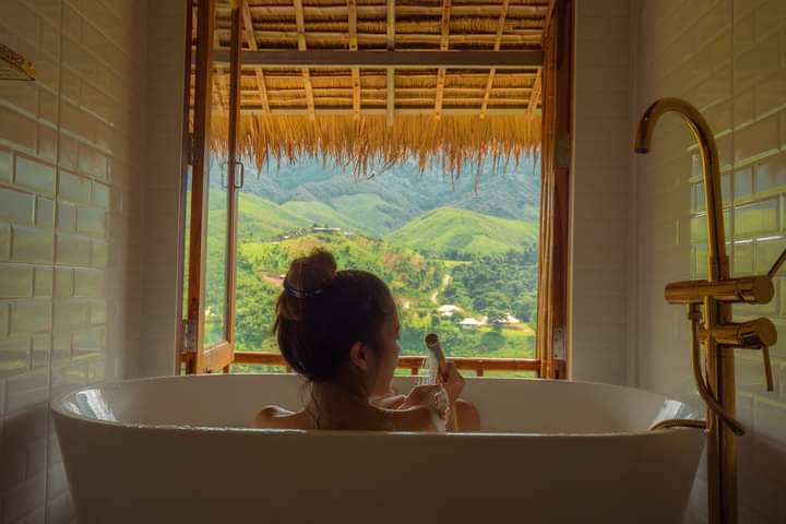 ห้องพักหลังนี้จะเป็น อาคารหลังแฝดภายใน เป็นกระโจมแบบมีระเบียง ห้องน้ำส่วนตัว มีอ่างแช่ตัวอยู่ในห้องน้ำ คุณลูกค้าสามารถนอนแช่ตัวเห็นวิวจากตัวห้องน้ำได้เลย