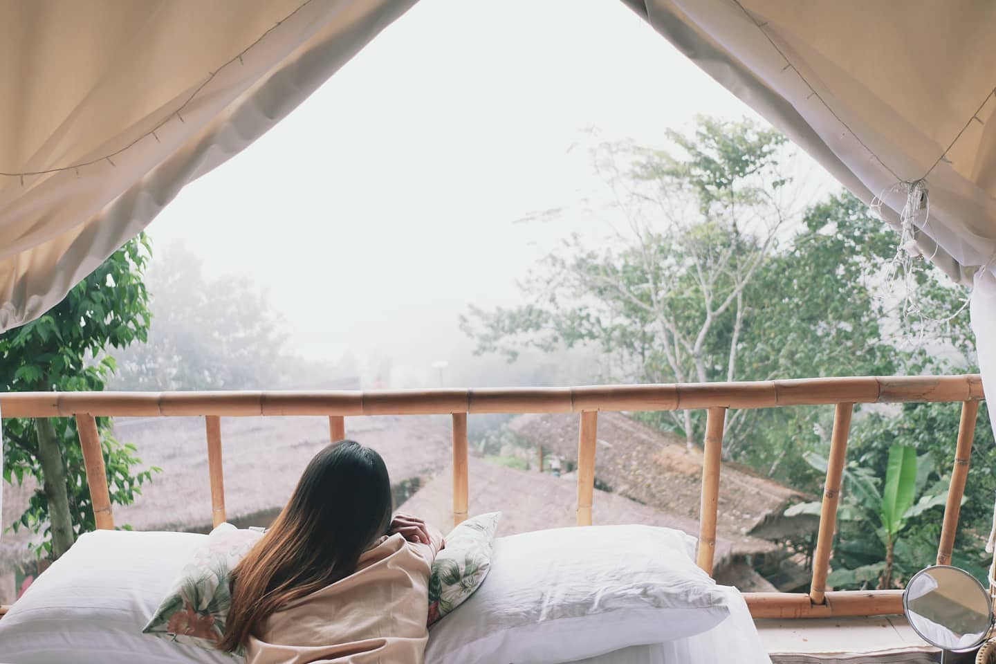 สามารถนอนชมวิวเขาและวิวหมอก ได้ในตัวห้องพักเลยค่ะ