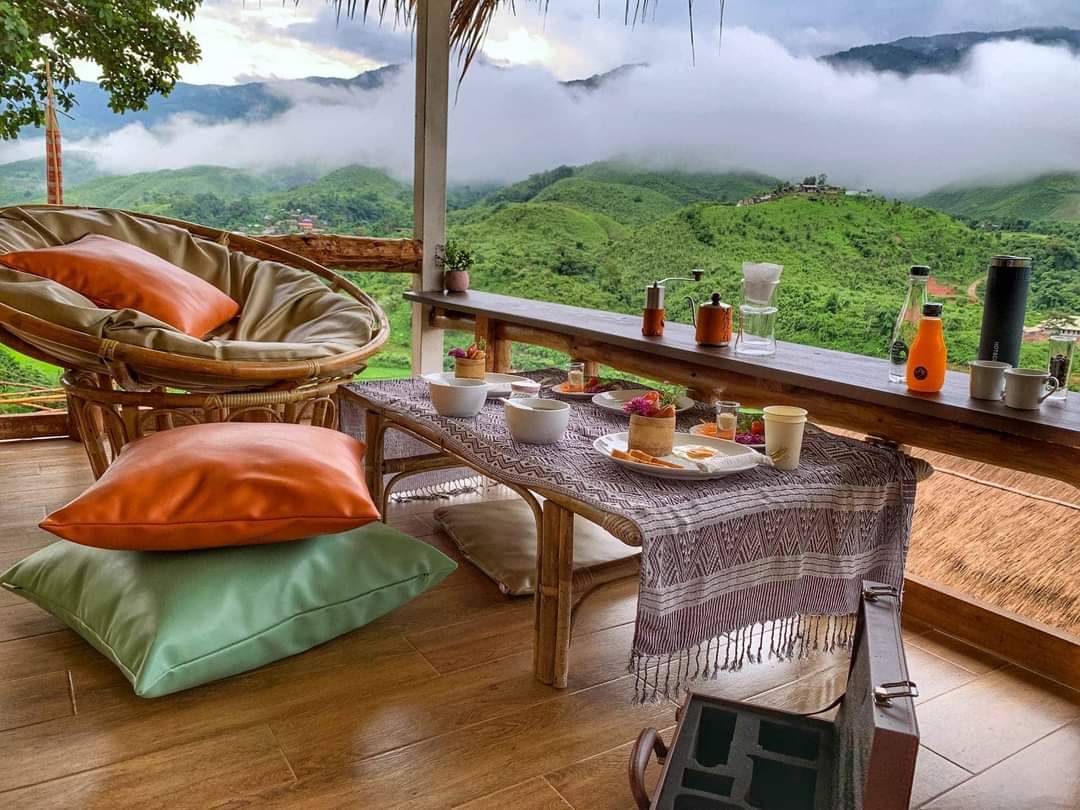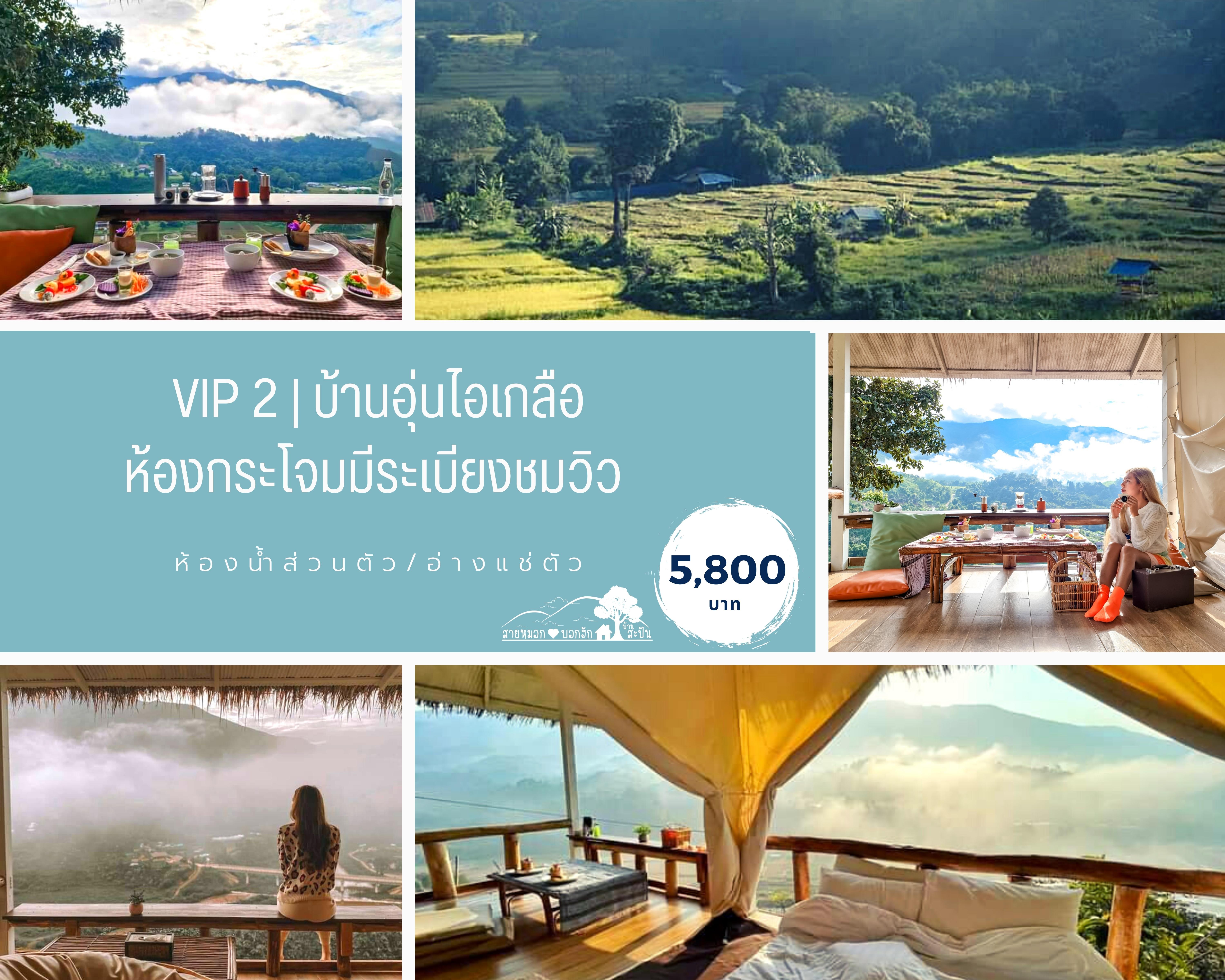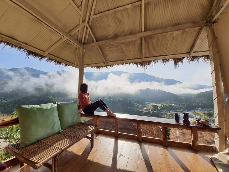 จะมองเห็นวิวจากห้องพัก เป็นนาขั้นบันได หมู่บ้านสะปัน วิวเขาที่ทอดยาว กั้นเขตแดนระหว่างประเทศไทย ลาว (เทือกเขาหลวงพระบาง) และ และสายน้ำที่ถือว่าเป็นต้นกำเนิดของแม่น้ำน่าน พร้อมกับ เสิร์ฟอาหารเช้า ที่หน้าระเบียงห้องพัก ลูกค้าจะฟิน ไปเลยทีเดียว เพราะหมอกจะลอยมาถึงหน้าห้องพักของลูกค้า