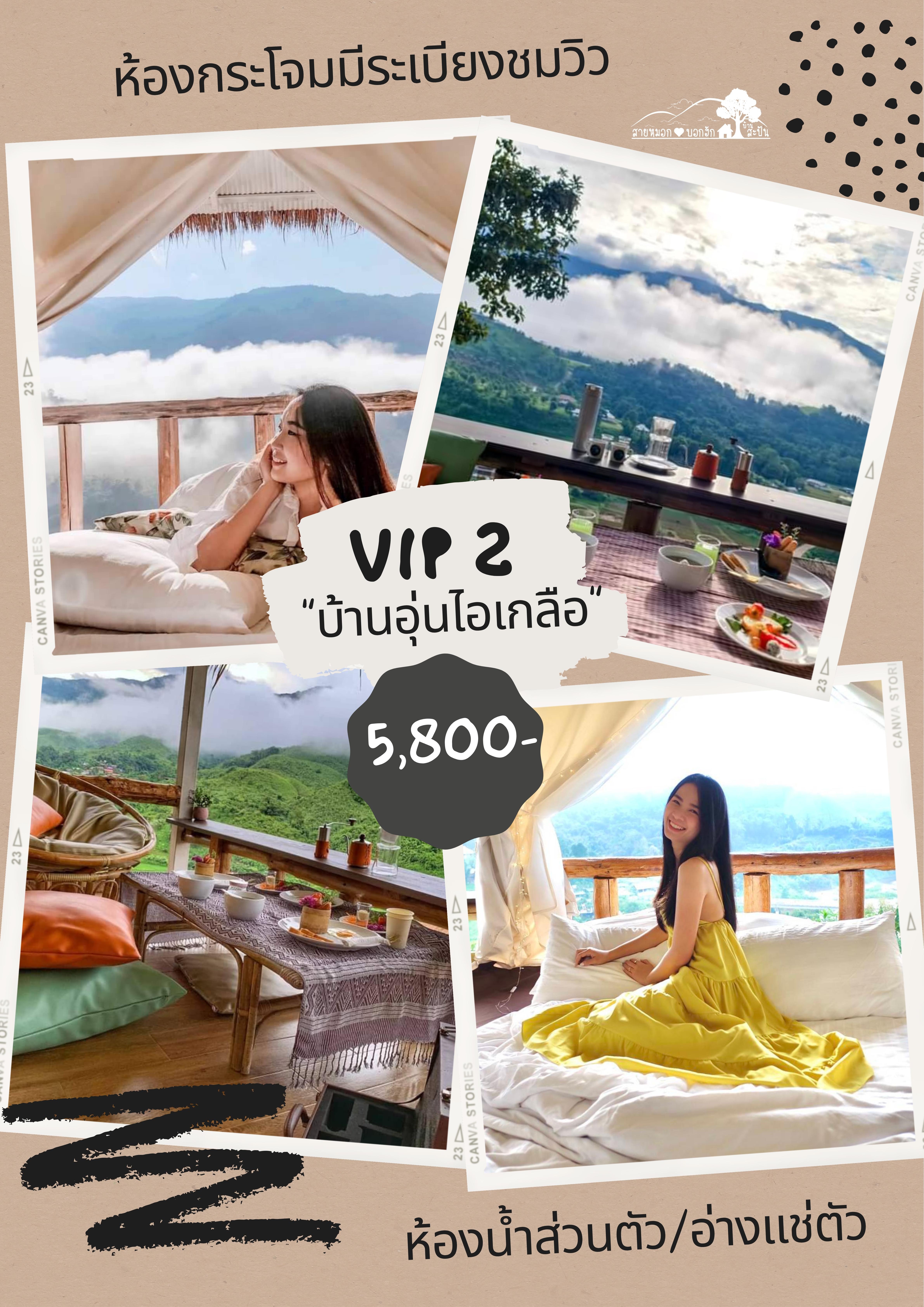 เป็นห้องพักกระโจมแบบมีระเบียง ห้องน้ำส่วนตัว ที่มีอ่างแช่ตัวกลางแจ้ง